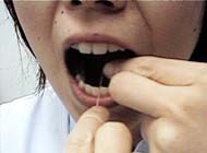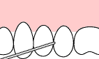 フロスを入れる時はナナメにしてゆっくり前後に動かしながら歯と歯の間に入れます。