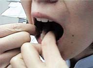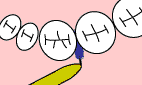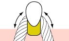 加減しながら歯茎に少し隠れるまでフロスをもっていき、両側の歯のどちらか一方の側面をこすりながら3回くらい上下させます。これを両側の歯にします。