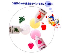 ストロベリー味の小児用歯磨き粉は比較的に良く見ますが、マスカット味、アップル味の歯磨き粉は珍しいものです。